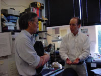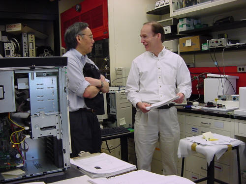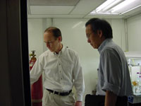 Dr. Chu is shown with Dr. Charles Dismukes touring the facility of the BioSolarH2 team in the Chemistry Department at Princeton.
