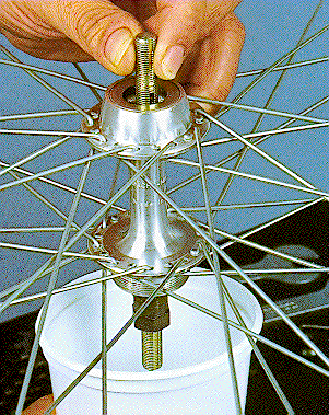 spinning wheel. The wheel has weights on the spokes that permit its moment of