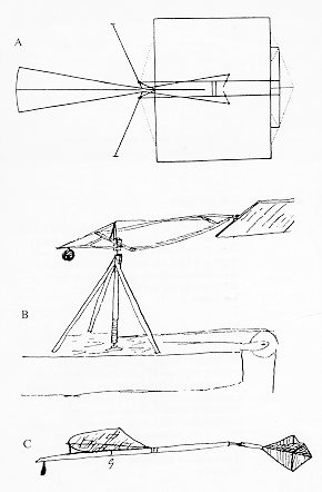 device shown in sketch B indicates a rotating arm with an attached airfoil,