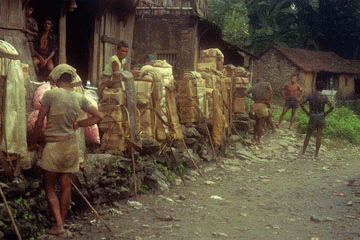 shows porters in the mountains of Nepal in 1989. The goods to be transported