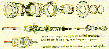In 1902, Henry Sturmey and James Archer in England devised a three speed rear hub based on an epicyclic gearbox. The middle speed was determined by the tooth ratio between the chain wheel and the rear sprocket, and the gear box could give a 'high' gear 25% higher than this and a 'low' gear 20% lower than the center value. |