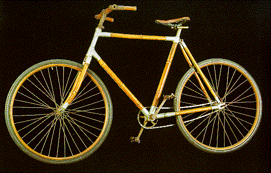 Light-weight materials had been tried before the advent of artificial composites. The photograph shows an 1897 bike made from bamboo - a natural composite material. The tubular bamboo sections were joined using metal lugs, a technique still employed in some carbon fiber-epoxy composite bikes. |