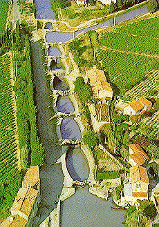 and photograph show the cascade of locks on the Canal du Midi at Fonserannes