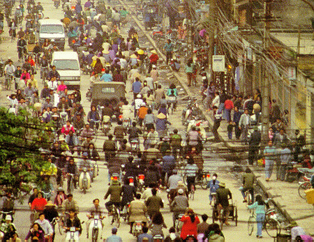 shows the vehicle mix on Kham Thien street in Hanoi, Vietnam and indicates