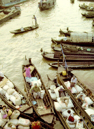 the rice market area of Camau, a city in Minh Hai province, Vietnam. Large
