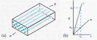 is the same in the matrix and the fiber, an isostrain situation. In (b) is shown