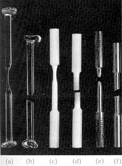 a glass tested at 800 K and the material has formed a neck due to viscous flow.