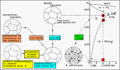 The diagram illustrates this for the Al- 4 wt% Cu system. When the