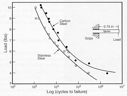 shown opposite compares S-N curves for two spoke materials, carbon steel