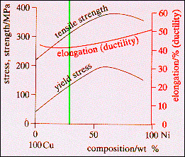 diagram shows that the pure elements have the lowest yield and tensile stress