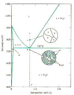 phase transition in the iron carbon system takes place at 727 C. The