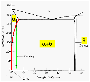 The phase diagram shown is a partial diagram for the Aluminum-Copper system