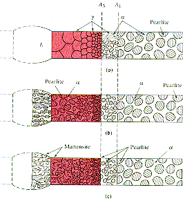 both the liquid zone and the austenite. The weld is now hard and brittle, undesirable