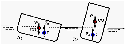 diagram shows two situations that can occurs when the hull is tilted to one side.