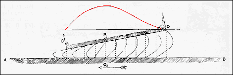 diagram shows the pressure distribution (red) developed between two non-parallel