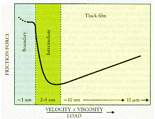 the friction force increases slowly. The lubricating film is now of macroscopic