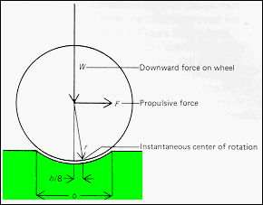 in the ground of width, b, and the effective point of the wheel that is at rest
