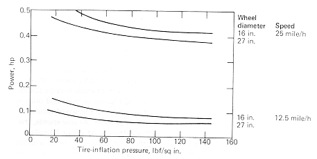 below shows the effect of wheel diameter and tire pressure on the rolling