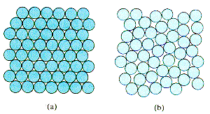 shows the structure of two condensed phases, (a) is a solid and (b) a