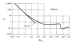 where D is the diameter of the sphere and V the velocity. The drag increases