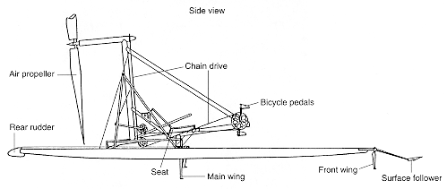 shown in the photograph) support the craft. The two front foils provide roll-stability,