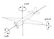 rotations: roll about the longitudinal axis, yaw about the vertical axis,