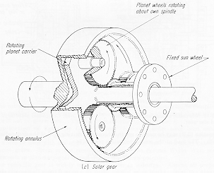 At the center is a 'Sun' gear which meshes with the three 'Planet' gears that