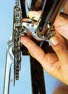 the chain sideways to transfer it from one chainwheel to the other. The chain