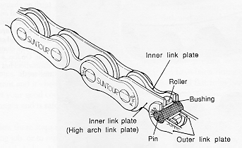 The diagrams below compare a chain design in a manuscript of Leonardo da Vinci to a modern bicycle chain. Engineering is well founded in history! The links in the da Vinci chain are solid and held in place by pins. They lack the friction reducing rollers of the modern bicycle chain. |