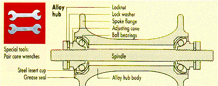 below show the cup/cone bearing hub construction for an all alloy front hub for