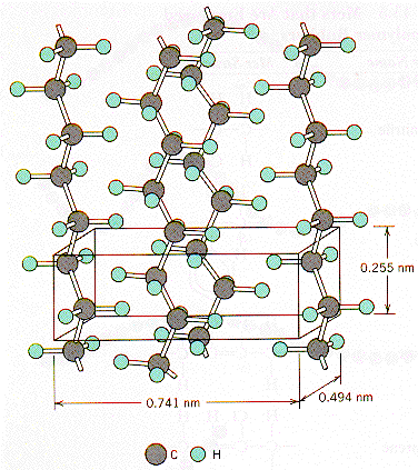cell of polyethylene showing the long, parallel macromolecules that pass through