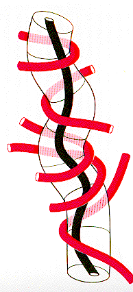 moving molecule translates as a unit through an imaginary tube defined by neighboring