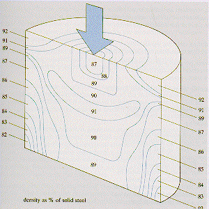 by compaction of a cylinder of steel powder with a single top punch is shown