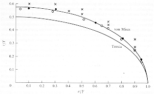 (x) shown is compared to theoretical curves for the two yield mechanisms. · The von Mises yield model is
