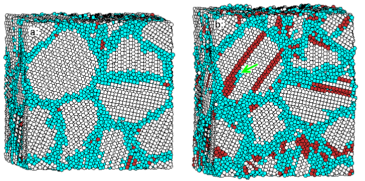 diagrams show nanocrystalline copper clusters of about 100,000 atoms.