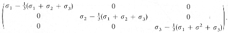| · The principal axes stress tensor may be separated into a "hydrostatic" and a "reduced" stress tensor, a procedure that permits modeling of the yield process. The principal axes are labeled so: σ1 >σ2 >σ3 | |||||||||||||||||||||