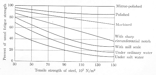 · Surface condition and environment also influence the fatigue strength of steel as shown.