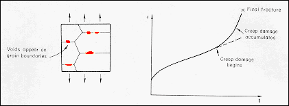 creep range into the tertiary range, a crack forms, and the material finally
