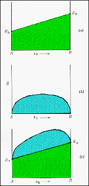 · The Gibbs function curves are composed from entropy and enthalpy contributions. · The entropy term contains both the thermodynamic entropy of the pure materials and the entropy of mixing. · a) No mixing: SS = SA + XB SB