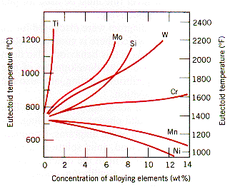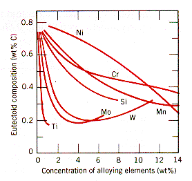 · Other alloying additions alter both the eutectoid invariant temperature and the eutectoid composition of the ferrous alloy as shown.