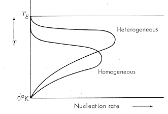 heterogeneous and homogeneous nucleation processes is shown. · The heterogeneous process needs less undercooling