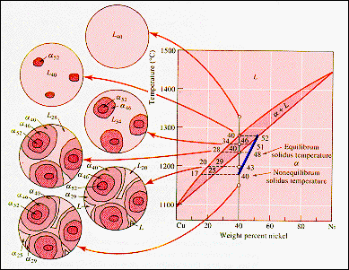 cooling occurs rapidly, composition gradients are formed and equilibrium