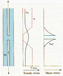 matrix and the fiber in the region of a fiber break is illustrated. · The shear stress between the fiber and