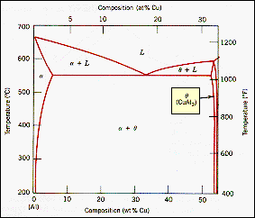 In overaged precipitation hardened Cu-Al alloys, CuAl2 is the precipitate that provides the material hardening. The precipitate has incoherent boundaries with the (Al) matrix and consequently the interaction with dislocations is reduced compared to non-equilibrium precipitates with coherent boundaries with the matrix. |