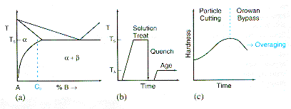 during a reheating (ageing) process. Diagram (c) shows the hardness as