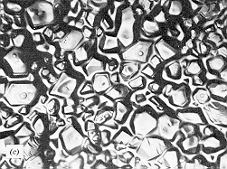 Sintering may also involve a liquid phase if some constituents of the starting powder have a low melting point. The photograph shows the surface of the sintered ceramic Forsterite, 2MgO.SiO2, where the liquid phase present during sintering is depressed below the surface due to surface tension forces.