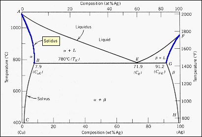 as it is cooled in equilibrium from the liquid phase. For the copper-silver