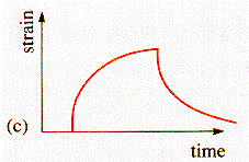 to a step change in applied stress. Diagram (c) shows strain v. time and