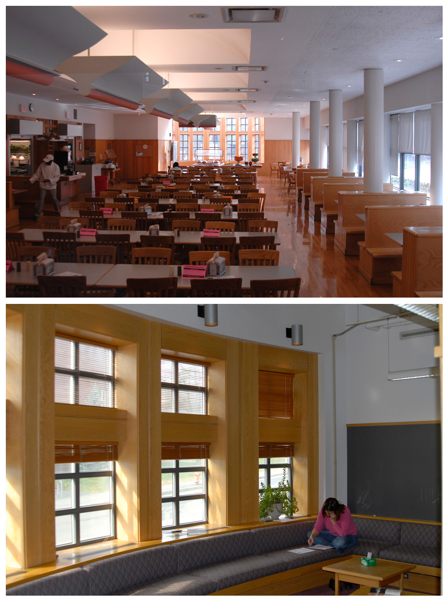 the dining room of Wu Hall (below top), where the buffet table is the focal