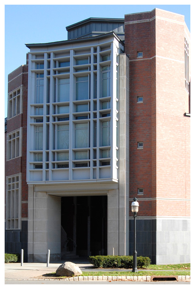 Corwin Hall (below left) has an apse-like entrance, and Bowen Hall (below